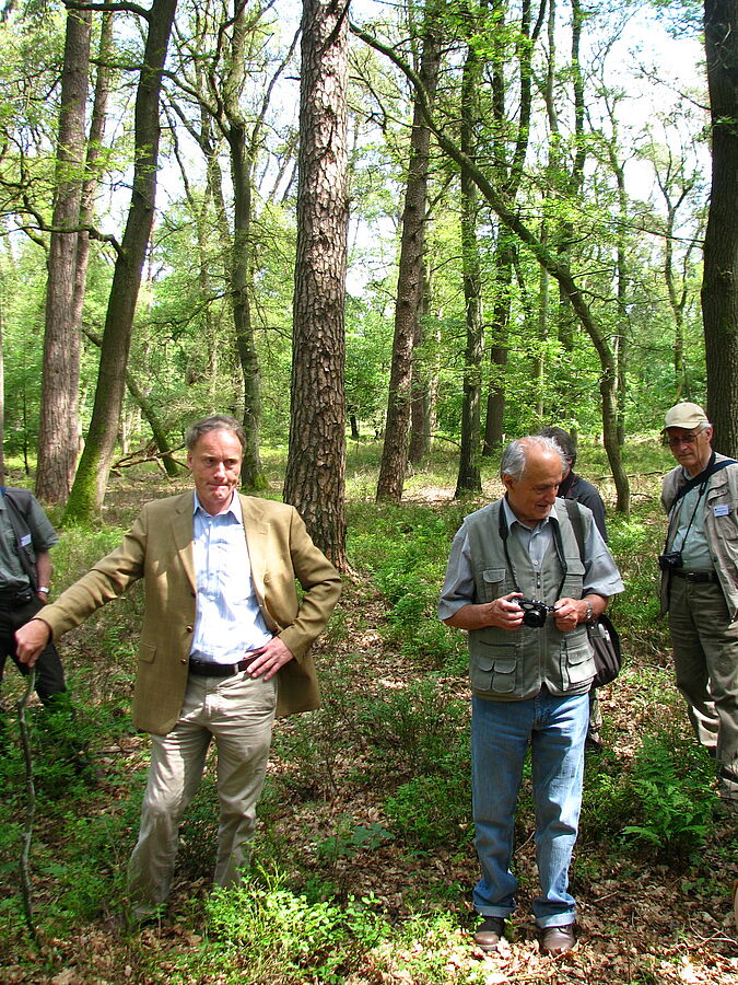 Of course, the forests of the Veluwe were also visited, namely those of the municipality of Apeldoorn and the Kroondomein. Chief of the Royal Forest Estate and former chairman of Pro Silva Europe, Jaap Kuper explained the management strategy of the Crown Domain in Emma's Oord. Subsequently, the participants were shown around a variety of uprisings where the effect of various control measures taken over time was discussed. One of the most interesting excursion points was a forest plot where, decades ago, individual natural rejuvenation of native oak under Scots pine had taken place. These trees were an integral part of the coronation roof and had reached respectable diameters. Could there still be hope that all the apple-tree oak trees that appear in a large part of the Dutch Grovedennen forest in the lower floor could produce harvestable wood? Some of our foreign colleagues did not doubt this. But... we have to be patient and take care of them!